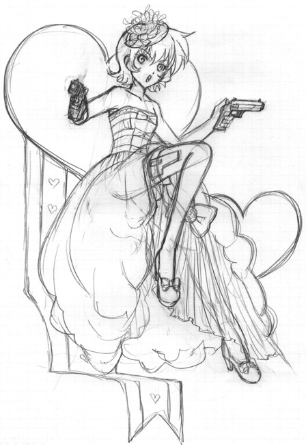 ウエディングスタイルですがイリアらしく銃を持たせてみました。