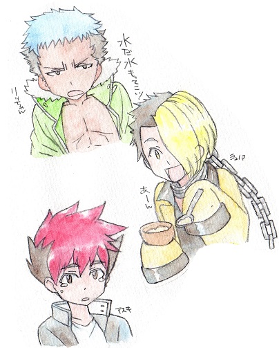 あと私のラクガキだとほのぼのしてますが、原作はもっとかっこよく、殺伐としてます。