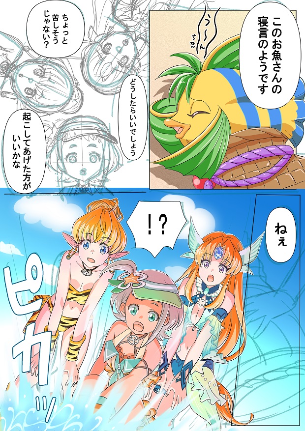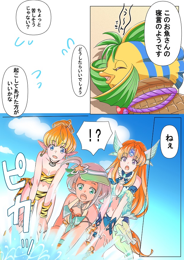 メモジェムのザル魚君が寂しそうな表情してたので、きっとダッフルちゃんたちが楽しい夢にかえて目覚めさせる、みたいなお話かな・・・?
