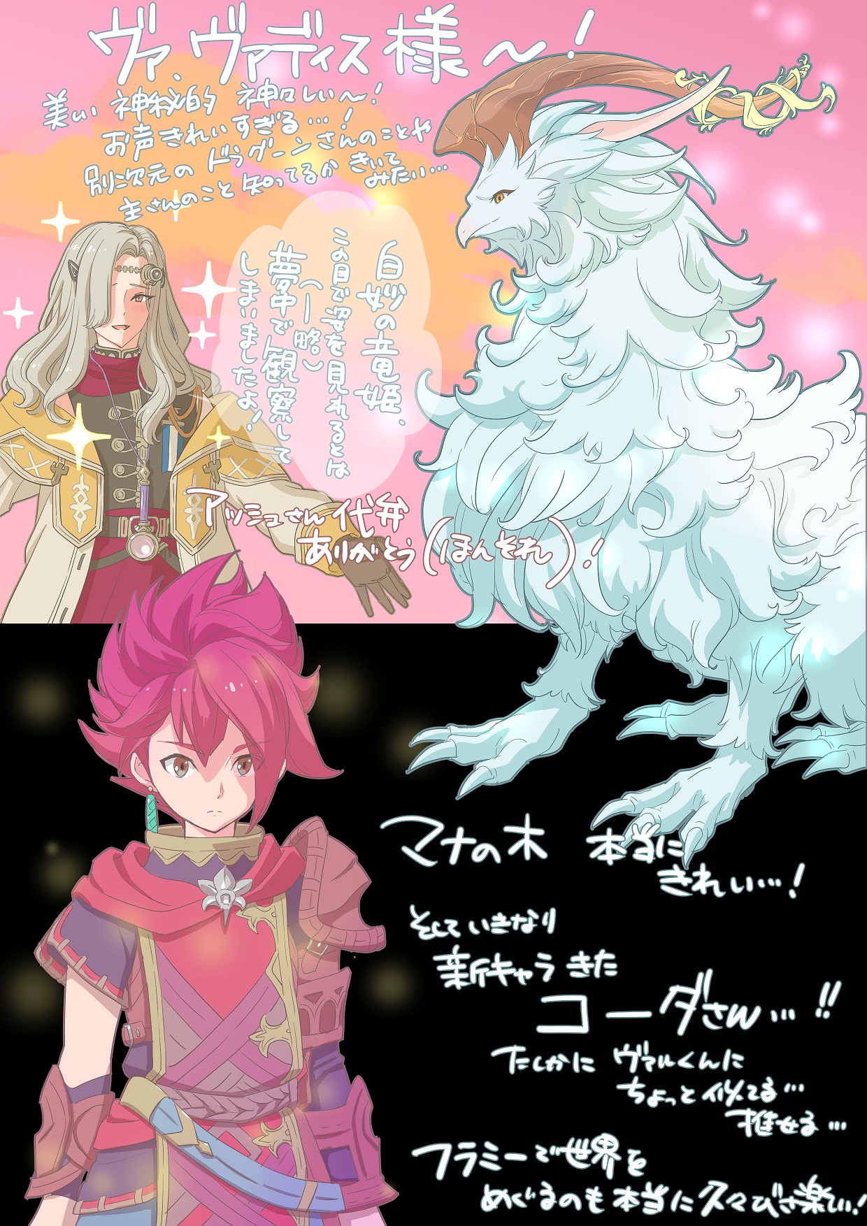 (VoM進めてとうとう・・・!ヴァ・・・!!ネタバレすぎて控えますが最高ありがとうございます・・・ありがとうございます・・・!!あと、コンサートも当選しましたありがとうございます・・・!!行ける~)