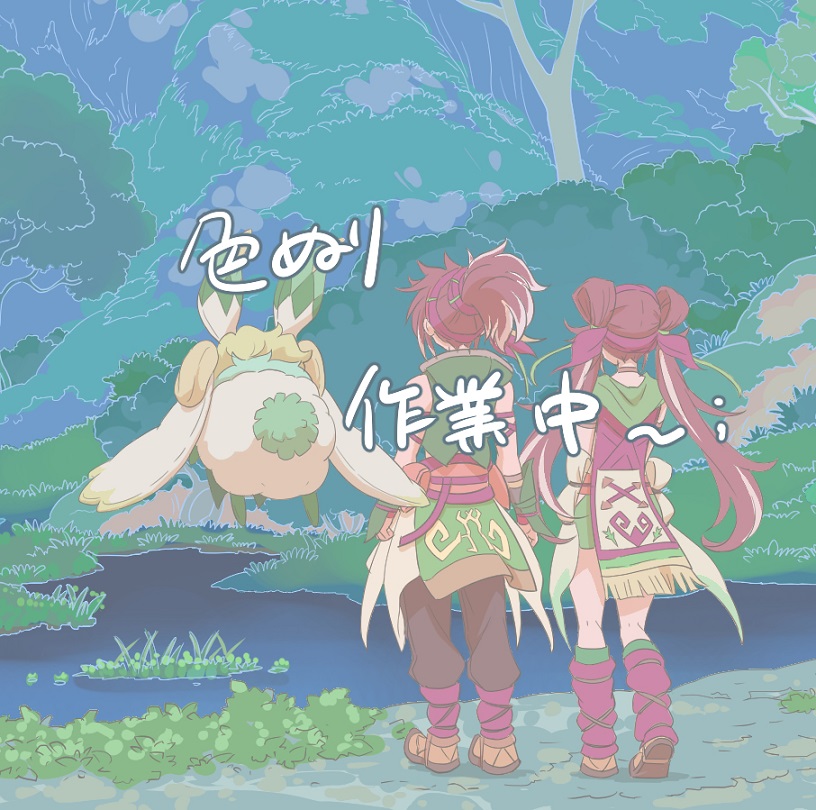 (エコマナの記念絵ちょっとずつ塗り中~;背景大変でわけわからなくなってるけど楽しい)