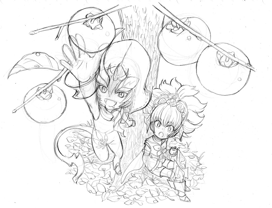聖剣ROMの世界観と柿はちょっと合わないですが、ラクガキ↑。