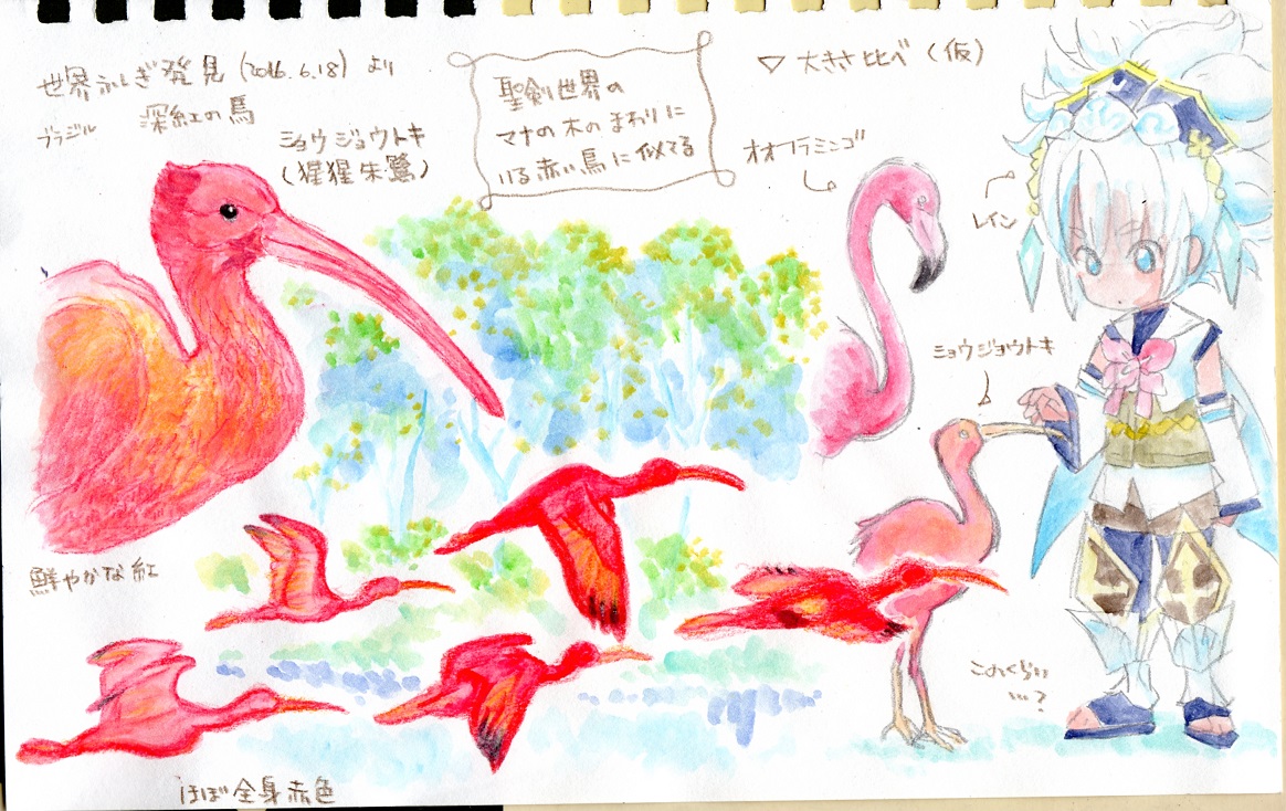 ↑大自然の中を赤い鳥が飛ぶ光景みたら、つい勢いでラクガキ。↓