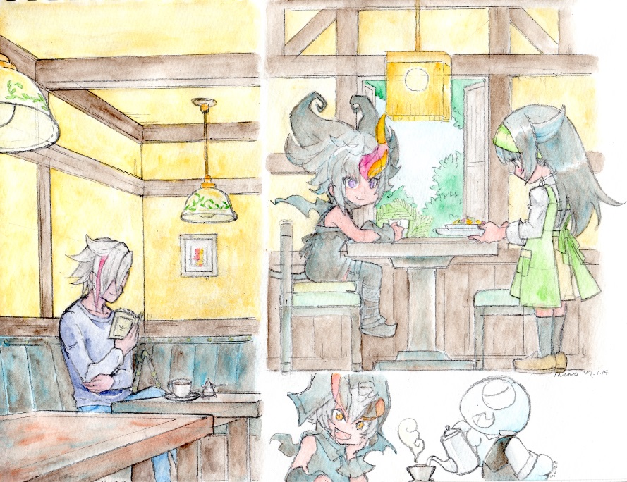 最近入ってみた喫茶店の雰囲気がすごく好みだったので、いきおいでらくがき。