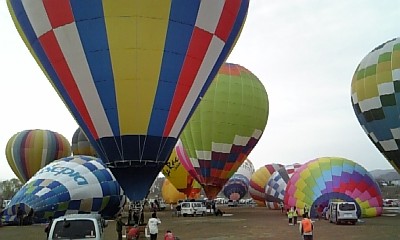↑だいたいほとんどのバルーンが膨らんで、空へ飛ぶタイミングを計っています。