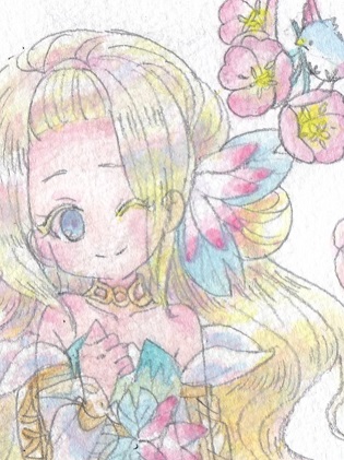 ティスとお花でお祝い絵。久々に操作したらすっかりやり方忘れてました;でもOPとか見てまた感動。すき。
